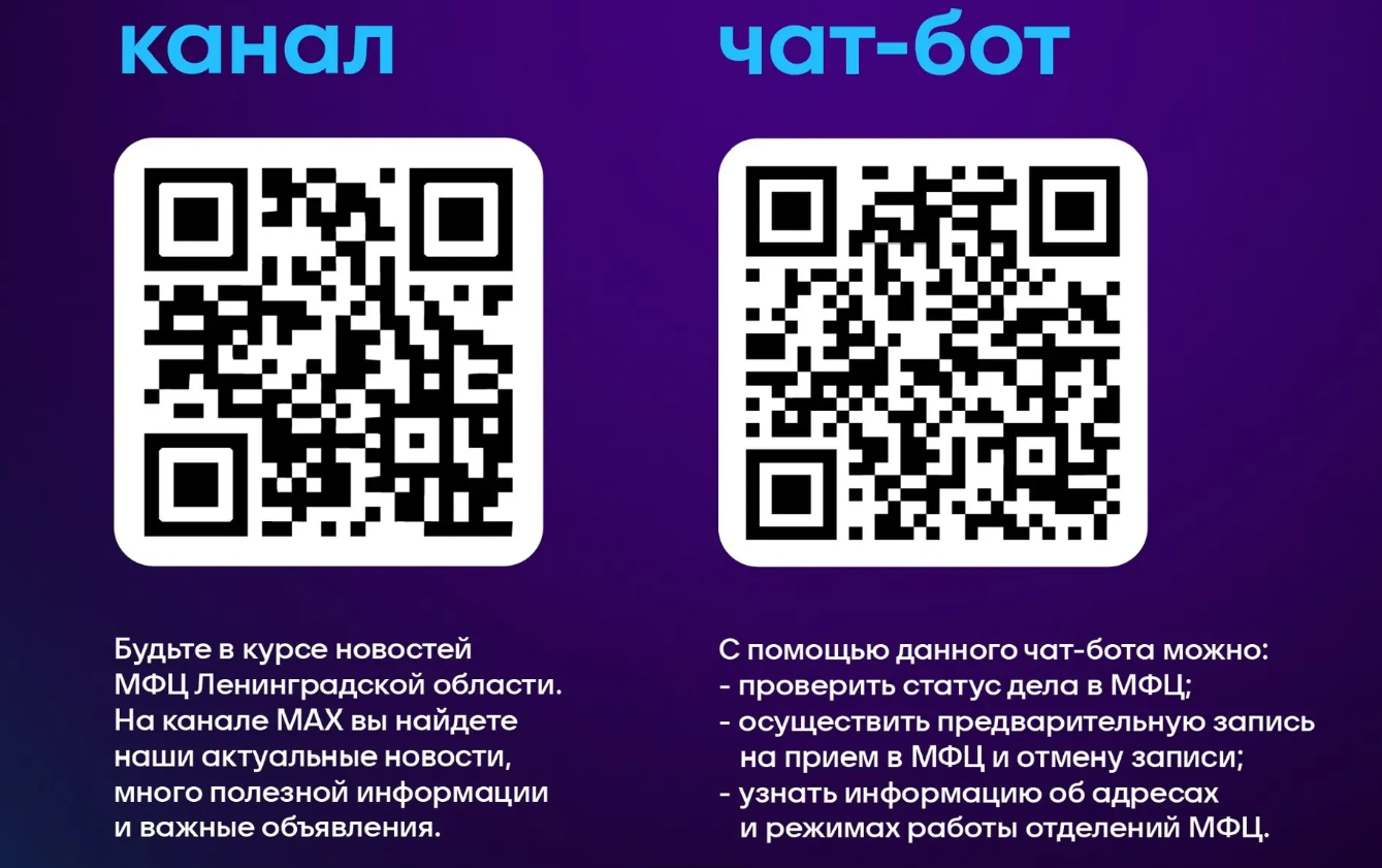 Также приглашаем вас подписаться на новый новостной канал МФЦ Ленобласти в мессенджере МАХ .
