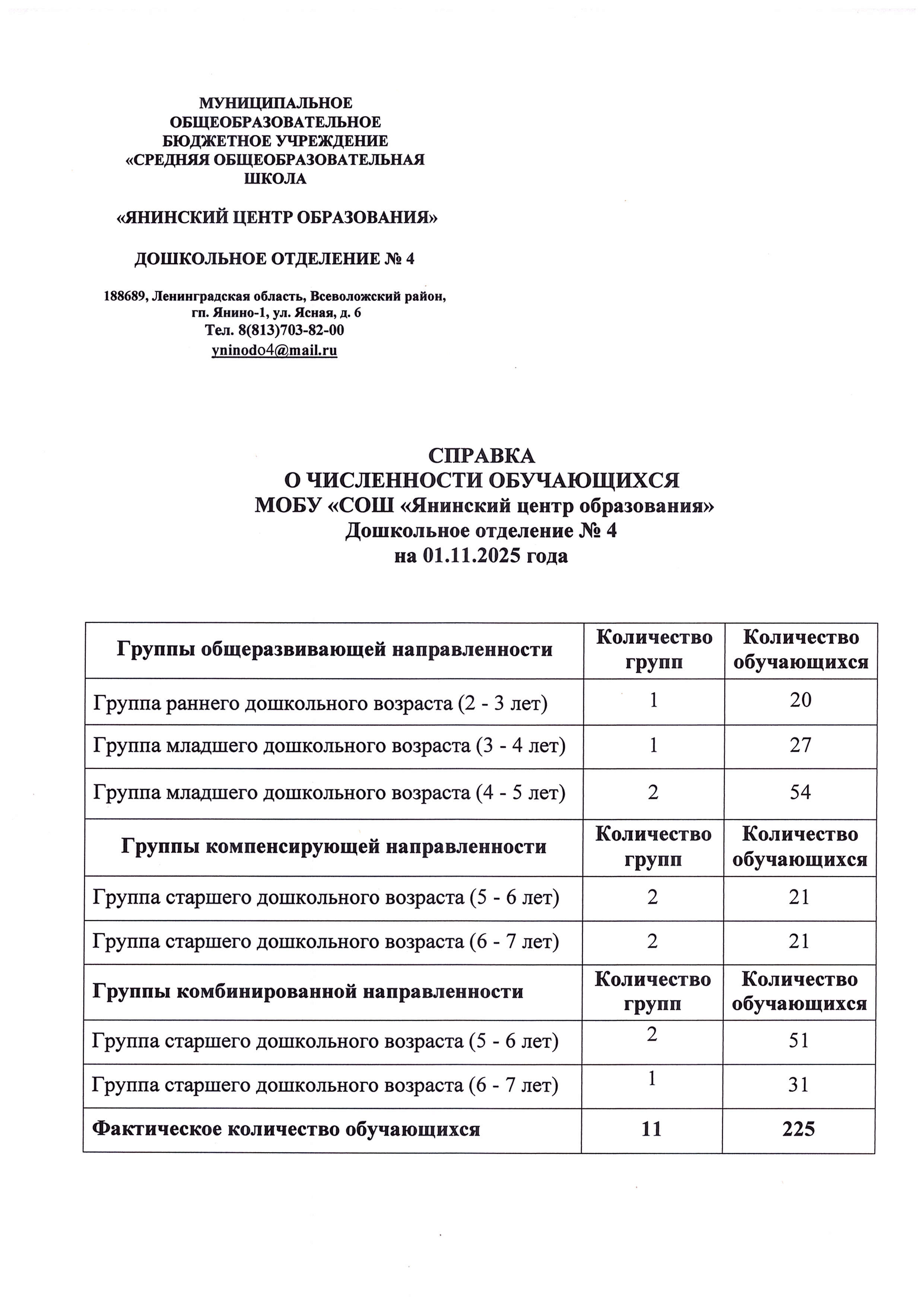 Справка о численности обучающихся ДО № 4 на 01.11.2025