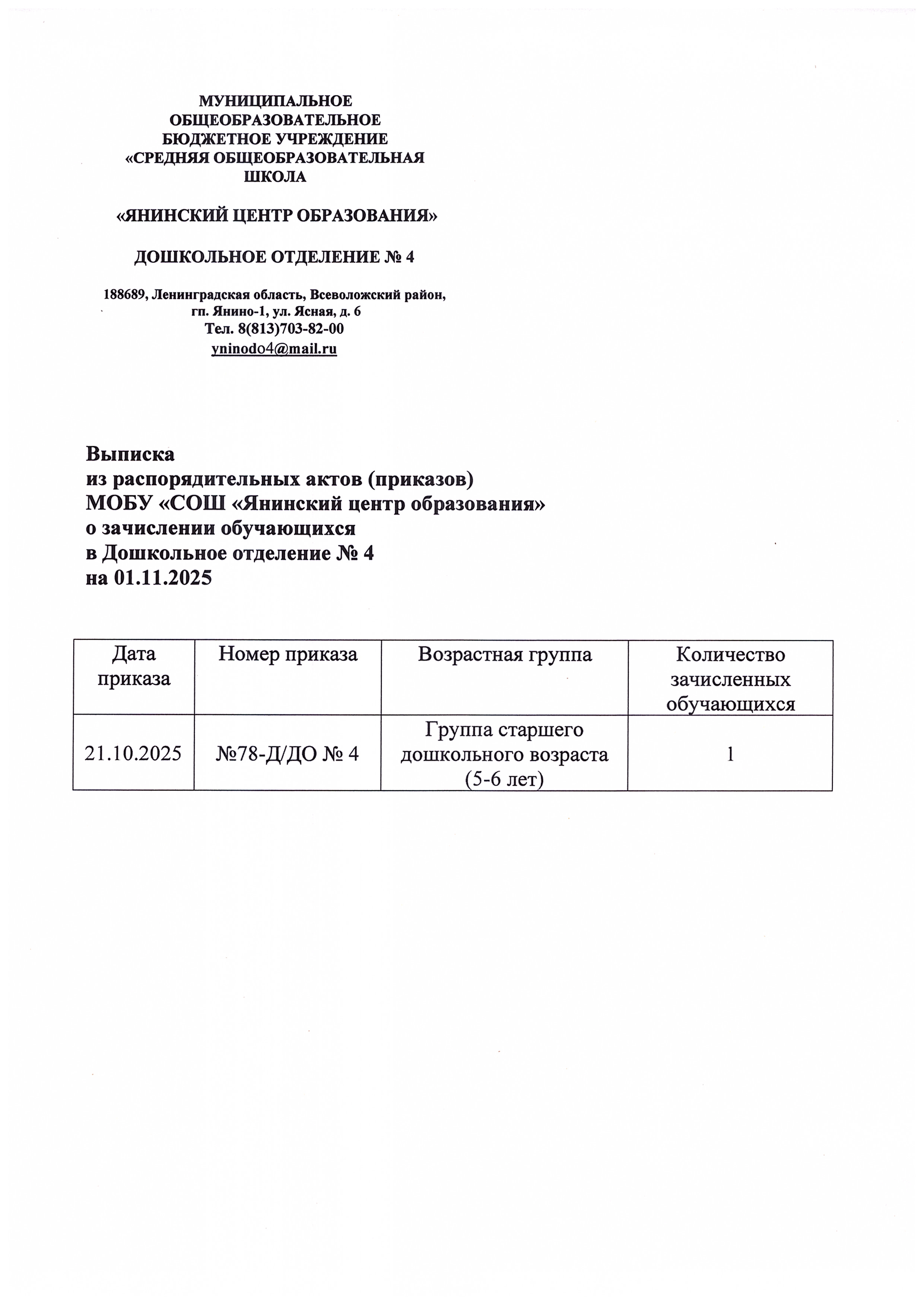 Выписка из распорядительных актов (приказов) о зачислении обучающихся на 01.11.2025