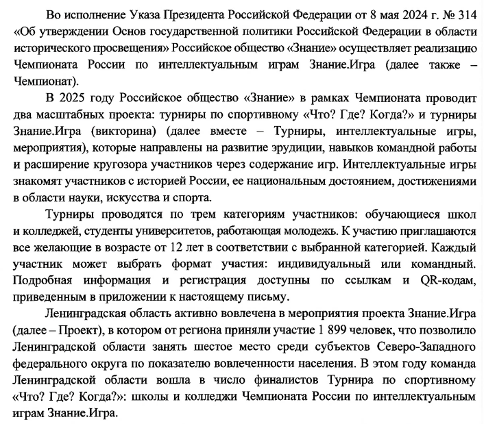 Реализация проекта Чемпионата России по интеллектуальным играм Знание. Игра
